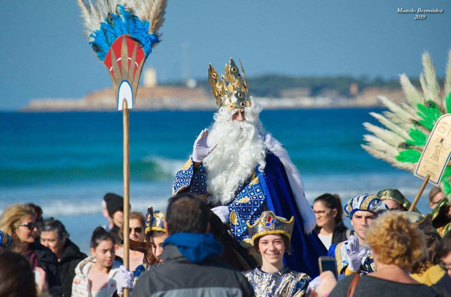Am Vortag des Feiertages 'landen' die drei heiligen Könige um 12 Uhr mittags am Strand von Conil. Hoch zu Ross geht es Richtung Altstadt von Conil.